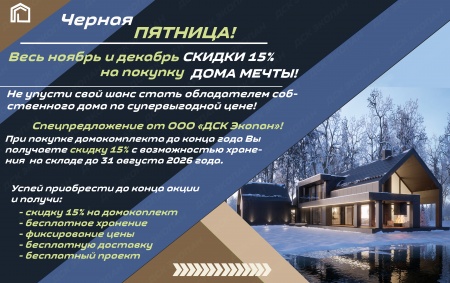 Черная пятница - оформи заказ на строительство дома с 01.12 по 31.12.2023г. и получи скидку!